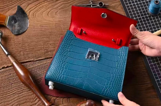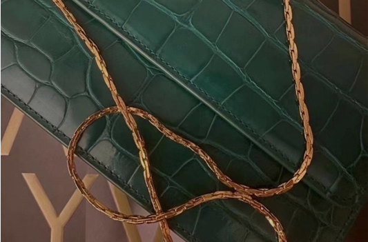 #03 American Alligator Leather with 18K Gold Chain – Red