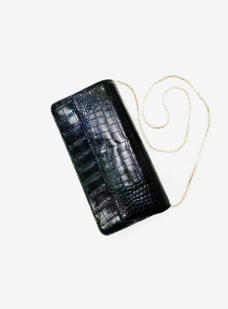 #021 American Alligator Leather with 18K Gold Chain – Black