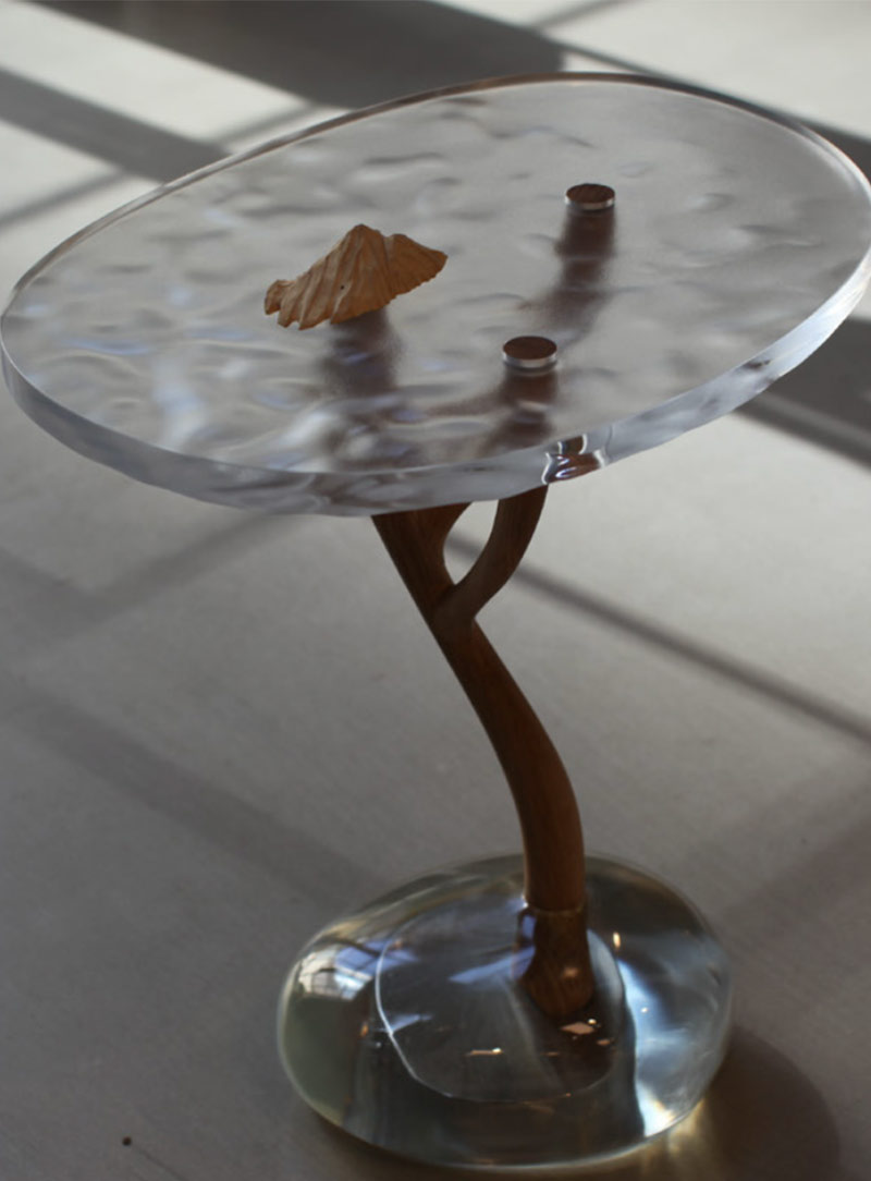 FLOWERED MIRROR SIDE TABLE